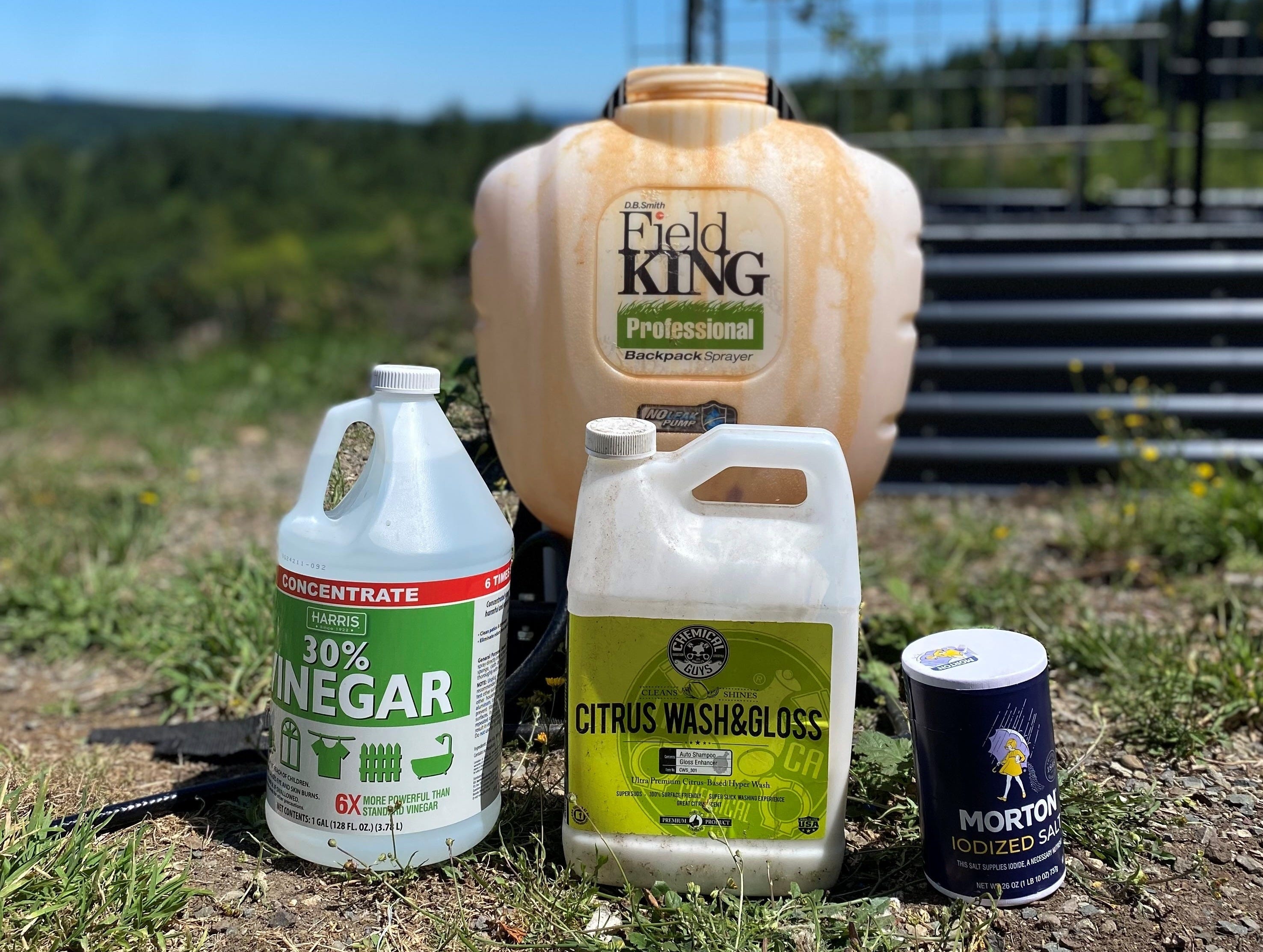 Recognize that this concoction will kill grass and flowers as well, so be sure to aim directly at the weeds.